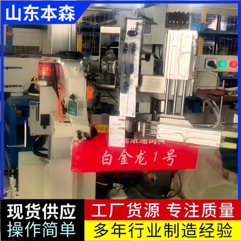 1.全流程自动化:设备自动完成“送袋→贴标→折边→缝合→切线→计数”全流程,减少人工干预,降低劳动强度。例如,工人仅需将袋子放置在输送带上,设备即可自动完成后续操作。