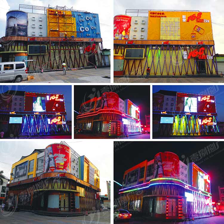 业务范围:led发光字平面发光字LED点阵发光字、LED冲孔发光字、树脂字、无边发光字、超级发光字、3D发光字、通体发光字、全彩发光字、高档炫彩发光字、迷你发光字、树脂发光字、特大铝板或其他金属板发光字、特大楼盘挂网发光字、LED亮化工程、金属精工字、金属烤漆字、水晶字及其他字;