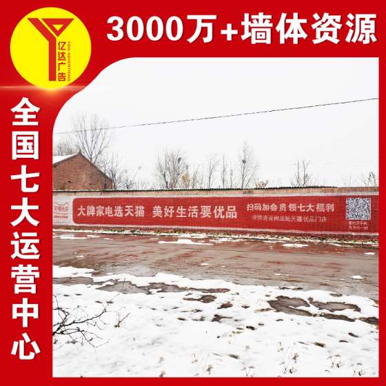 湖北宜昌墙体广告 覆盖25个省 绘画刷墙写大字 农村墙体广告, 亿达墙体广告拥有百折不挠、向上的心态,坚毅和高尚的品格,面对困难、克服困难的勇气,是我们每位员工所需要的,在工作中面对种种压力时,要选择超越。丰富人们的沟通和生活,透过长期的往来关系,为选定的客层提供品牌推广服务,进而为品牌推广创造何时的生涯发展场所。农村刷墙广告效应,农村刷墙广告是一种很接地气、强制关注的广告形式,目前品牌下乡一般都会选择刷墙广告,墙体广告是开发三四级市场必选的广告方式。以前的墙体广告比较简单粗暴,现在的墙体广告的文案越来越有创意也越来越美观了,随着农村市场进一步打开,农村广告的展现形式也会越来越多样化,刷墙广告具有良好的传播土壤,农村人口基数大,受众面广,易受到来自身边的广告的影响;简单、通俗、易懂、有趣,是刷墙广告的特性,这类广告线下投放,线上还可以话题互动、二次传播。手绘大字广告为常见的是纯文字形式,再者为图文结合,图为企业或产品标志。多以白底红字或者蓝底白字为主,颜色一般不超过三种,口号性强,农村刷墙广告更是拓展农村市场和一些低线城市、城镇市场的有力的武器,墙体广告到达的地方,就有该产品在该区域销热的场面,可以是田间地头,可以是农家小院,也可以是规范的门市,墙体广告相比其它广告形式是贴近消费终端的广告形式。