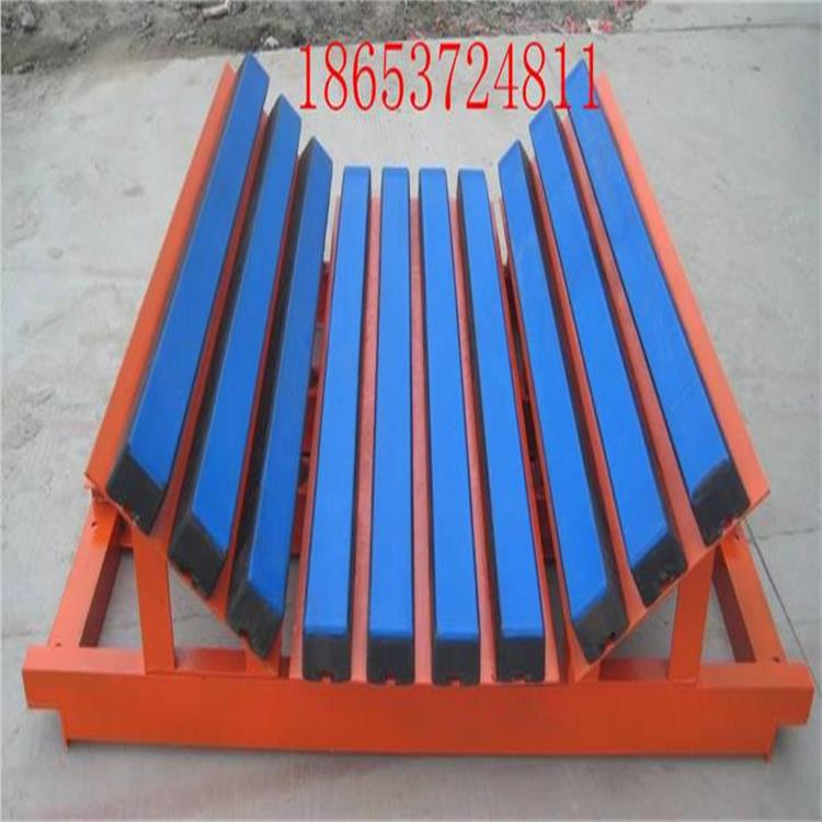 缓冲床主要用于替代缓冲托辊,缓冲床由缓冲条组成,而缓冲条主要应用优良的高弹性特种橡胶层充分有效吸收了物料下落时的冲击力,大大降低了物料下落时对输送带的冲击,真正的改善了落料点的受力状况。并采用特殊的UHMW高分子聚乙烯表面,使输送带与缓冲条之间的摩擦系数降低,且耐磨性好。缓冲床的使用保证了输送带的面与面的接触,受力均匀,有效防止了由于托辊断裂、脱落造成的皮带纵向撕裂,同时大大降低了皮带被锐器或尖锐物料穿透后纵向撕裂的概率