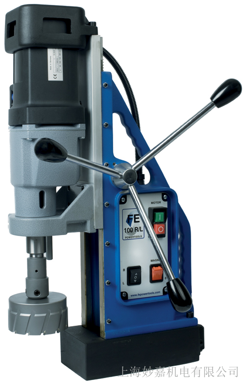 FE100RL磁座钻主要特点:可攻丝,无极变速,扭力保护,适合任何你能想到的任务。你不希望的一个更完整的机器。随着交换的莫氏锥度3让你可以用孔刀具到Ø100毫米的钻头,丝锥上M30使用麻花钻到Ø31.75毫米。根据要求,这台机器可以提供自动冷却系统。这种磁性钻孔机是由一个强大的1800瓦的电机驱动Eibenstock。该电机配有一个转矩控制,使您能够完全控制您的钻井作业FE100RL磁座钻FE100RL磁座钻技术参数: