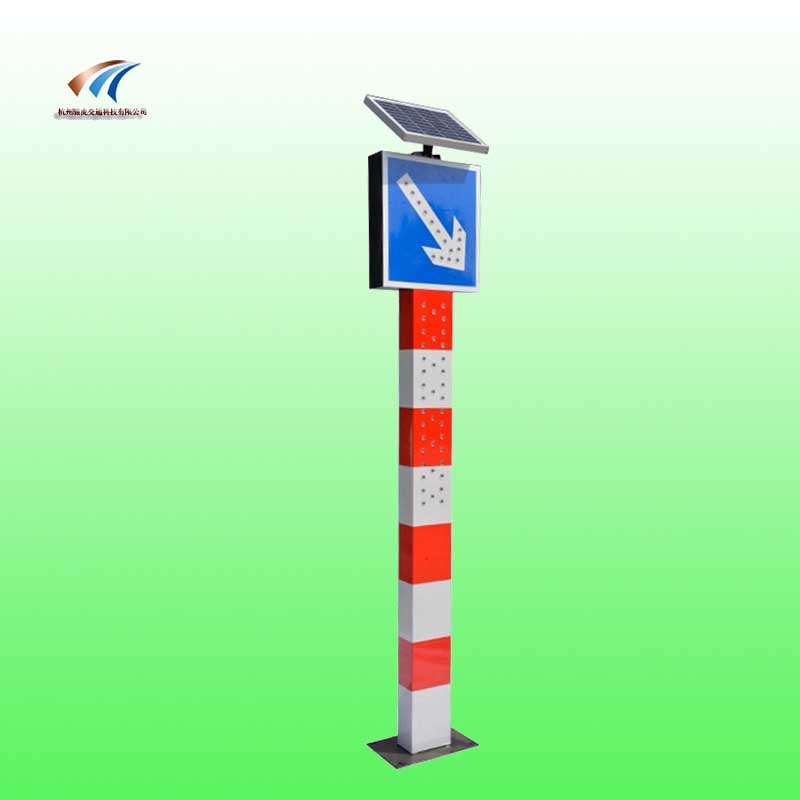 太阳能警示柱顶部可配:标志牌配有:右侧行驶、禁止掉头标志、掉头标志、限速标志等、文字配四字警示语:注意安全、车辆慢行、严管区域、单向行驶等均可定制、