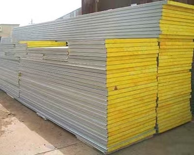 岩棉彩钢夹芯板产品特点:防火性能好,岩棉物为内芯层或玻璃纤维,可适合任意防火等级要求