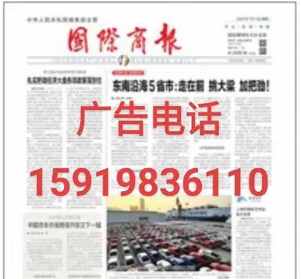 国际商报广告手机159-1983-6110《国际商报》由中华人民共和国商务部主办,商务部直属的国际商报社发行的报纸,现为对开8版的财经日报,为全国知名的行业性报纸。国际商报自创刊以来,本报本着遵循“让中国了解世界,让世界了解中国,促进对外更加开放,发展中外经济合作”的办报宗旨。紧紧围绕商务中心工作,着力宣传对外开放的方针政策,及时刊载外贸、内贸和对外经济合作的相关政策法规,全面展示商务工作成就,评述国际经贸动态和热点新闻,解读各国经贸政策和国内外市场趋势,传播国际贸易和投资机会等信息,普及国际经贸知识,展示商务企业风采,为内外贸易、利用外资和引进技术提供咨询服务,不仅见证了我国商务事业取得的辉煌成就和走过的光辉历程,也成为沟通海内外经贸联系的一条重要渠道,在推动商务事业发展方面发挥了积极作用,成为我国对外宣传的重要阵地、指导推动全国商务工作的重要工具,全方位报道和评析行业新闻事件,全景式介绍和解读各国商务环境