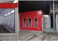整个喷漆房为拼装式结构,房体采用插式保温夹心彩钢板,密封、保温性能好,房体装有工作门,方便工作人员进出;铝合金包边大门,门装有观察窗,可观察房内动态,选用低噪音,高风量风机,确保喷漆效果的性,喷漆时外部空气经过粗效、中效过滤后由风机送到气压分流层,再经过顶部过滤净化后,进入喷房内。房内空气采用全降式,以0.2-0.3m/s的速度向下流动,使喷漆后的喷雾克粒不能在空气中停留,而直接通过底部出风口被排出房外,加上喷房内具有一定的空气压力,外部灰尘无法进入喷房内,这样不断地循环转换,且送入的空气具有一定的压力,可在工件四周形成一恒定的气流以去除过量的油漆,从而较大限度的保证喷漆的质量。