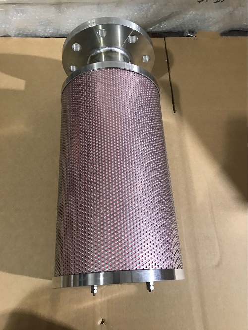 我公司消音器主要材料采用吸声频率性能好、耐温高的超细吸音玻璃棉为主体,以及美国的经特殊处理的消音滤材和其它材料组合而制成。通过消音器可降低噪音30分贝以上,完全达到进口产品的相同效果。并带有旁通安全阀,开启压力为2.0~2.2kgf/m2。当旁通安全阀打开,则必须更换消音过滤器的材料才能继续使用。该系列产品适宜于1.0MPa工作压力的吸干机配套。