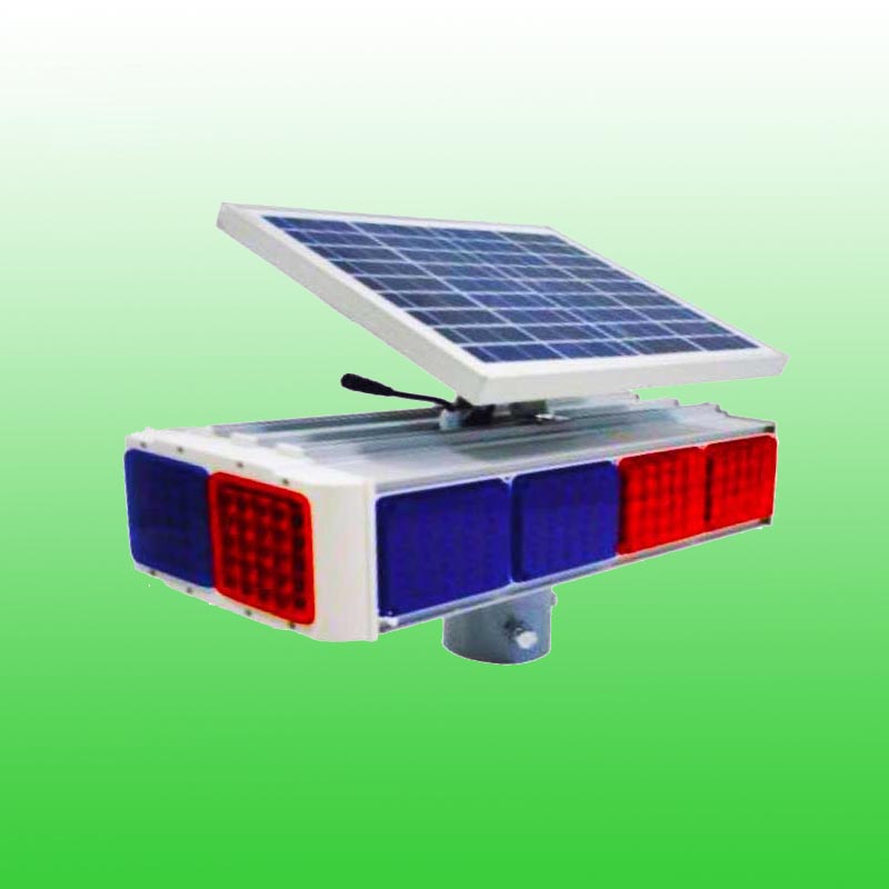 太阳能四灯爆闪灯特点:外壳由经氧化处理的铝材材组合,表面塑料喷漆,外观精美,长时间使用并不会出现锈迹斑斑,闪灯采用密封结构组合式灯组,每组20个超亮LED,真空镀膜反光板,亮度高,警示效果好,聚碳酸酯灯罩,抗冲击,耐老化,整灯的密封密封效果好,有很好的防水性,并配有过充电过放电保护功能。