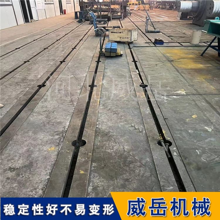 材质技术要求:优先选用HT300灰铸铁或QT500-7球墨铸铁,HT300抗拉强度≥300MPa、硬度180-250HBW,能承受长期重载而无塑性变形;QT500-7冲击韧性≥7J/cm2,适合高频振动的设备(如大型电机试验台)。材质需经“自然时效12个月+人工时效300℃×10小时”处理,内应力残留量≤50MPa,避免后期因应力释放导致精度漂移。