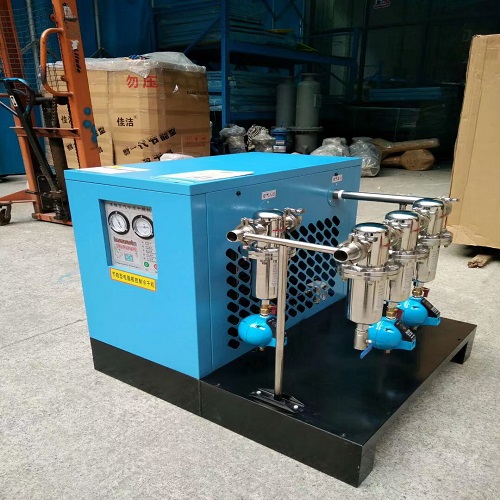 冷干机是根据冷冻除湿原理,将压缩空气强制通过蒸发器,利用冷媒与压缩空气进行热交换,把压缩空气冷却至2~10℃的范围,使压缩空气中气态的水和油经过等压冷却,凝结成液态的水和油,并夹带尘埃,通过自动排水器排出系统外,从而获得清洁的压缩空气。冷干机选用方法主要考虑处理流量、压力露点、使用环境以及电压等。
