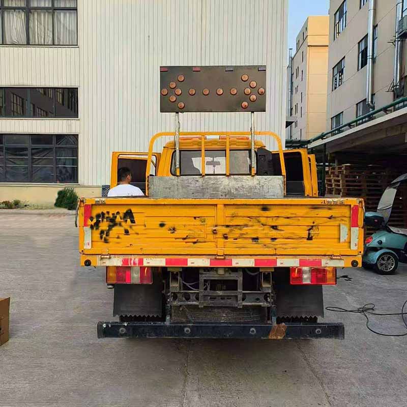 1 箭头诱导警示牌主要用于施工平板车、皮卡、洒水车,等路面养护施工车辆,可直接接车载蓄电池,支持直流12V或者24V供电,安装简便。