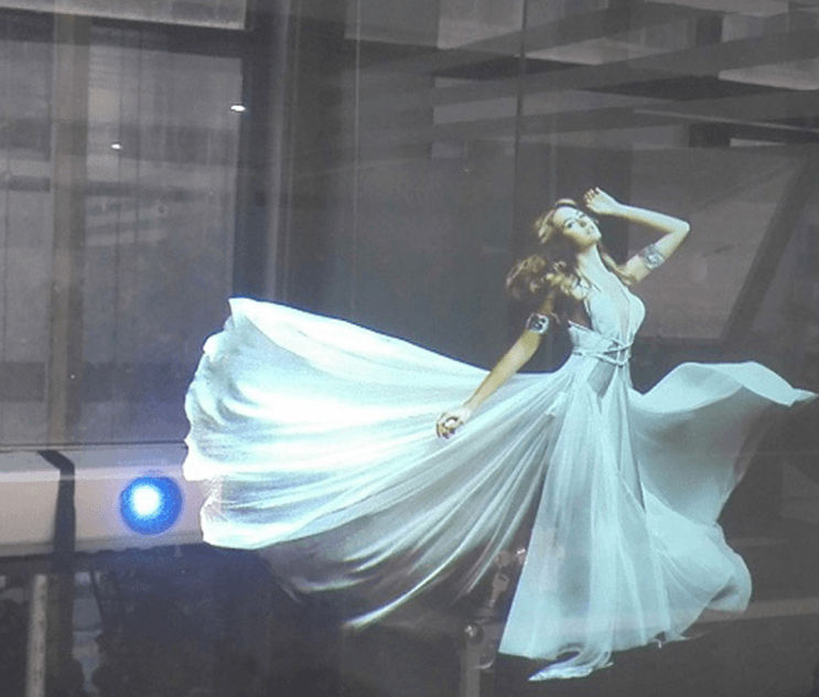 全息透明膜: 透明度约90%,适用于贴在透明玻璃上,使投影图像在室内和室外都可见。未投影时,外部人员可以看到室内物品或陈列品,使其非常适用于零售陈列和展示应用。