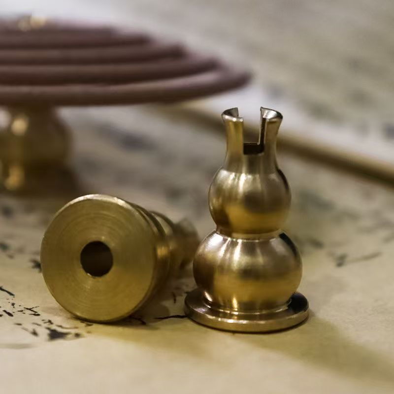 葫芦香插,精致小巧,全铜材质十分耐用,不易倒,适配各种线香盘香,如檀香气味清冽,常在日间使用,有助于营造清醒的环境氛围;沉香气味醇厚,气息持久,适合在需要集中注意力时使用。